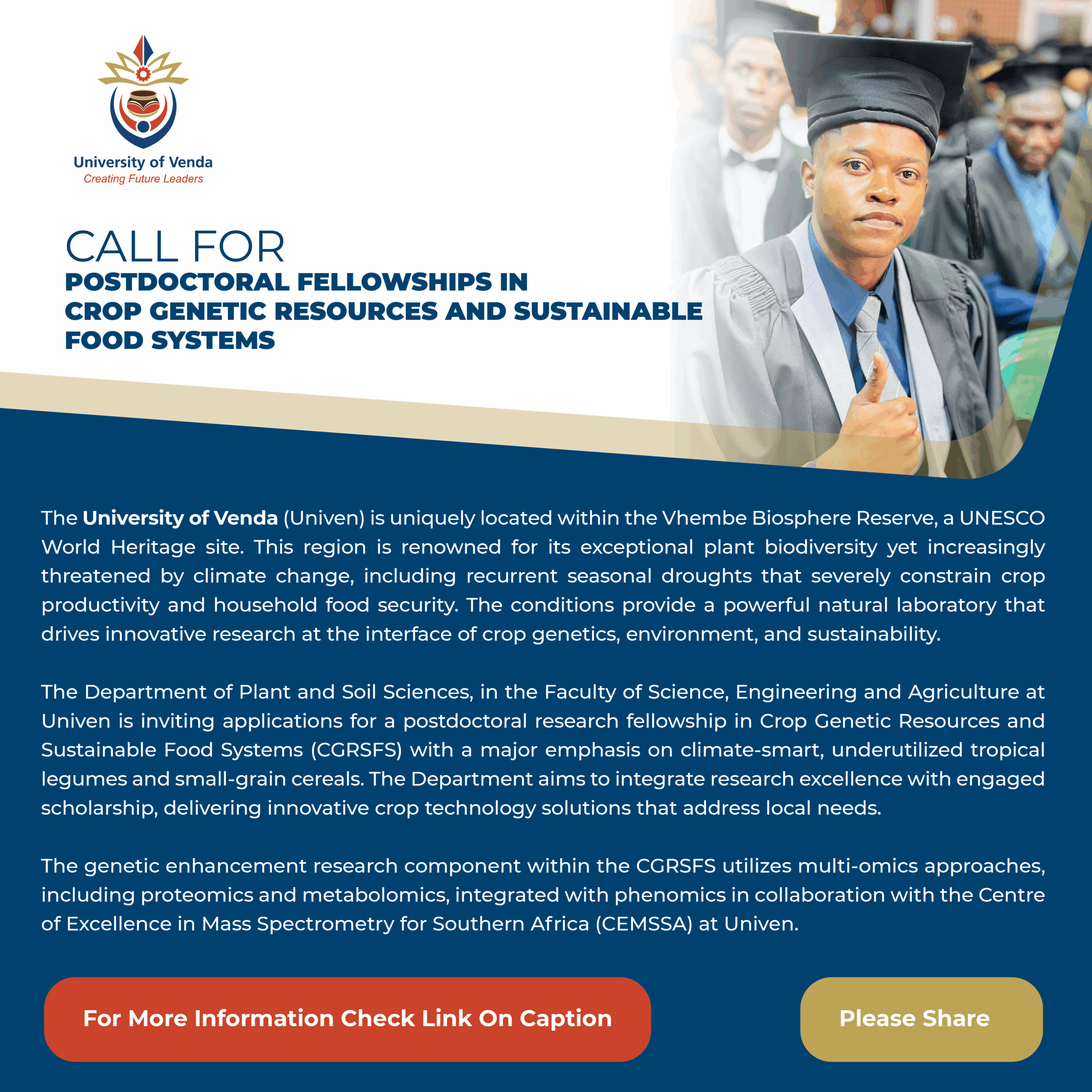Call for Postdoctoral Fellowship Crop Genetics advert