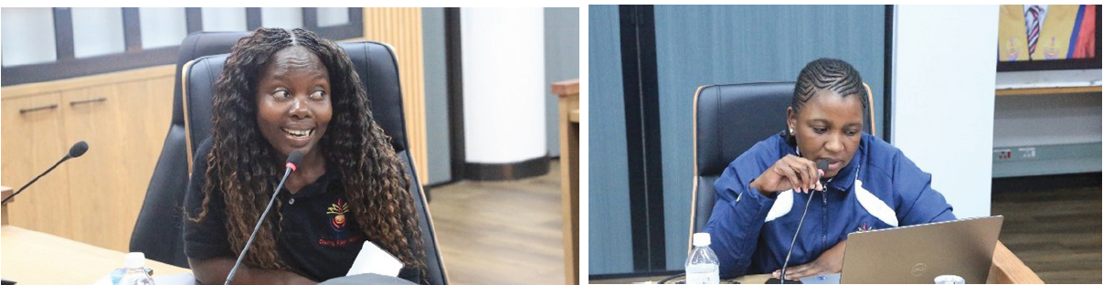The two interns, Ms Ntakadzeni Madima (left) and Ms Mulalo Ramathavha (right) were given an opportunity to reflect on what they have learned during their internship