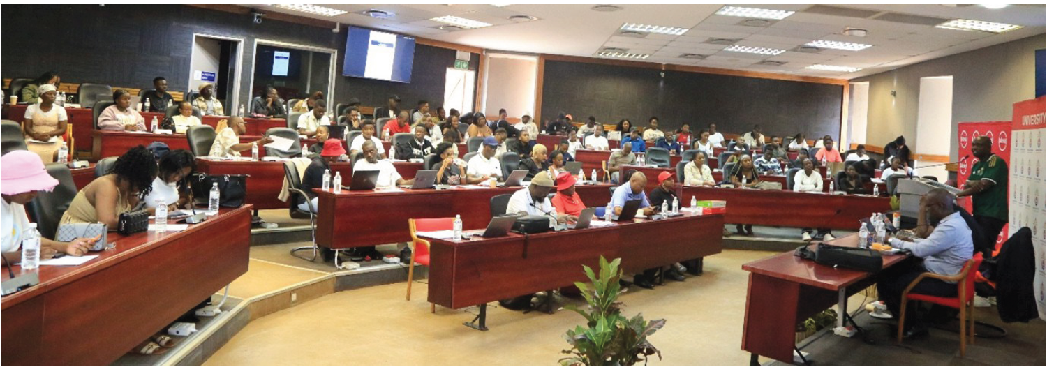 Mr Andisani Mathelemusa reinforced the importance of accountability, professionalism, and institutional pride, urging interns to uphold the university’s reputation and act as responsible representatives of both the institution and broader society. He encouraged them to rise above personal challenges and make meaningful contributions, emphasising discipline, collective re-sponsibility, and the value of fully embracing the opportunity to grow within the university community. Complementing this message, the induction programme featured key develop-mental components, including a workplace safety briefing by Mr Makananise, as well as work readiness and life skills sessions facilitated by the National Youth Development Agency (NYDA), focusing on personal growth, career planning, and entrepreneurship. In addition, financial lit-eracy training provided by ABSA equipped interns with essential skills to manage their stipends responsibly and make informed financial decisions.